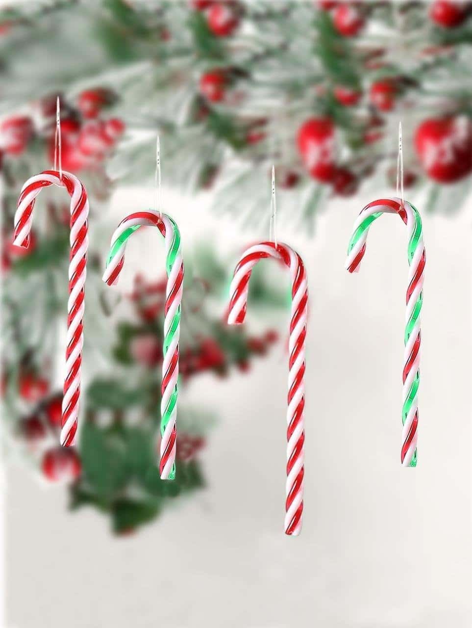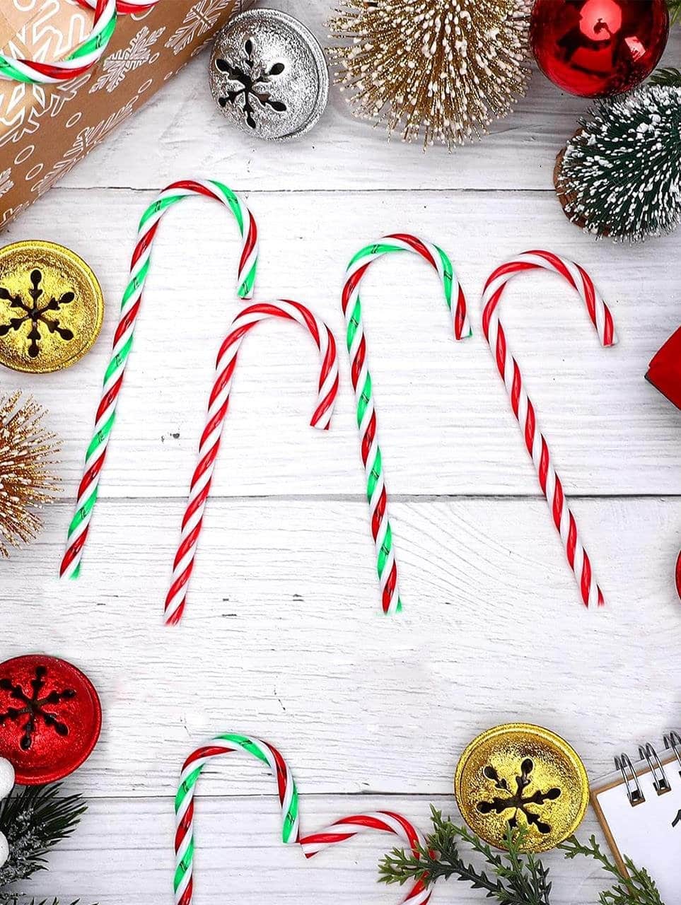 Yılbaşı ağaçlarının yada yılbaşı sofralarının vaz geçilmez yeni yıl süsü baston şeker süsleri. 12 cm uzunluğunda baston şeker şeklinde plastik yılbaşı süsleri.