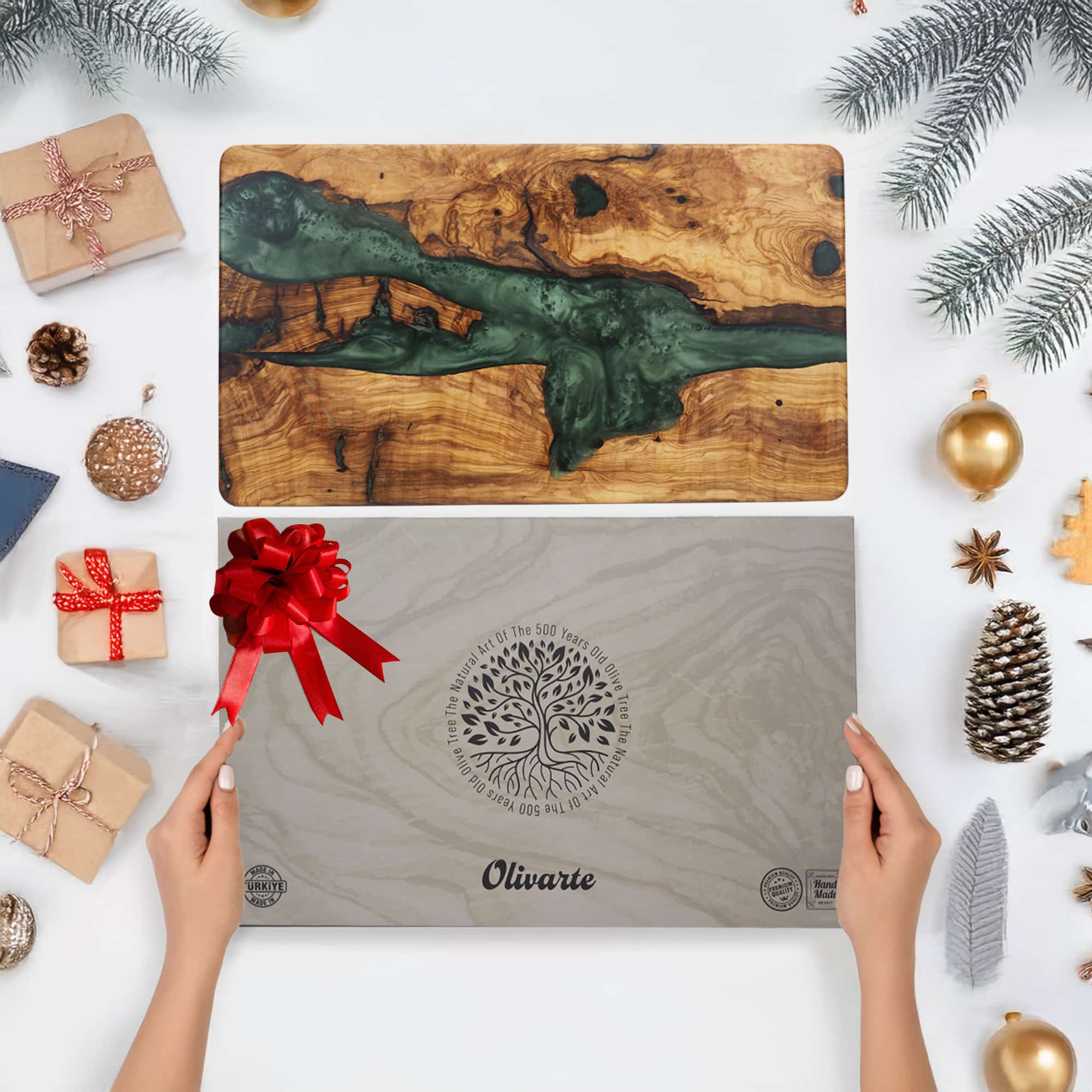 Zeytin Ağacı Zarafeti: Ömrünü tamamlamış 500 yıllık zeytin ağaçlarından üretilen her şarküteri tahtası, peynir, şarküteri, et veya herhangi bir yiyecek sunumu için masanıza zarafet katmak üzere el yapımı, benzersiz ve havalı bir sanat eseridir.