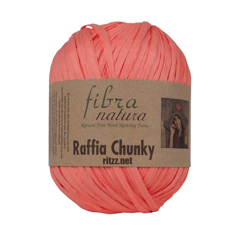 Fibra Natura Raffia Chunky 114-27 Yavru Ağzı renk, rafya kağıt ip %100 viskon içerikli pastel tonlarına sahip geniş renk seçeneği sunan ipliktir. Hafifliği sayesinde örümü kolay ve akıcıdır.