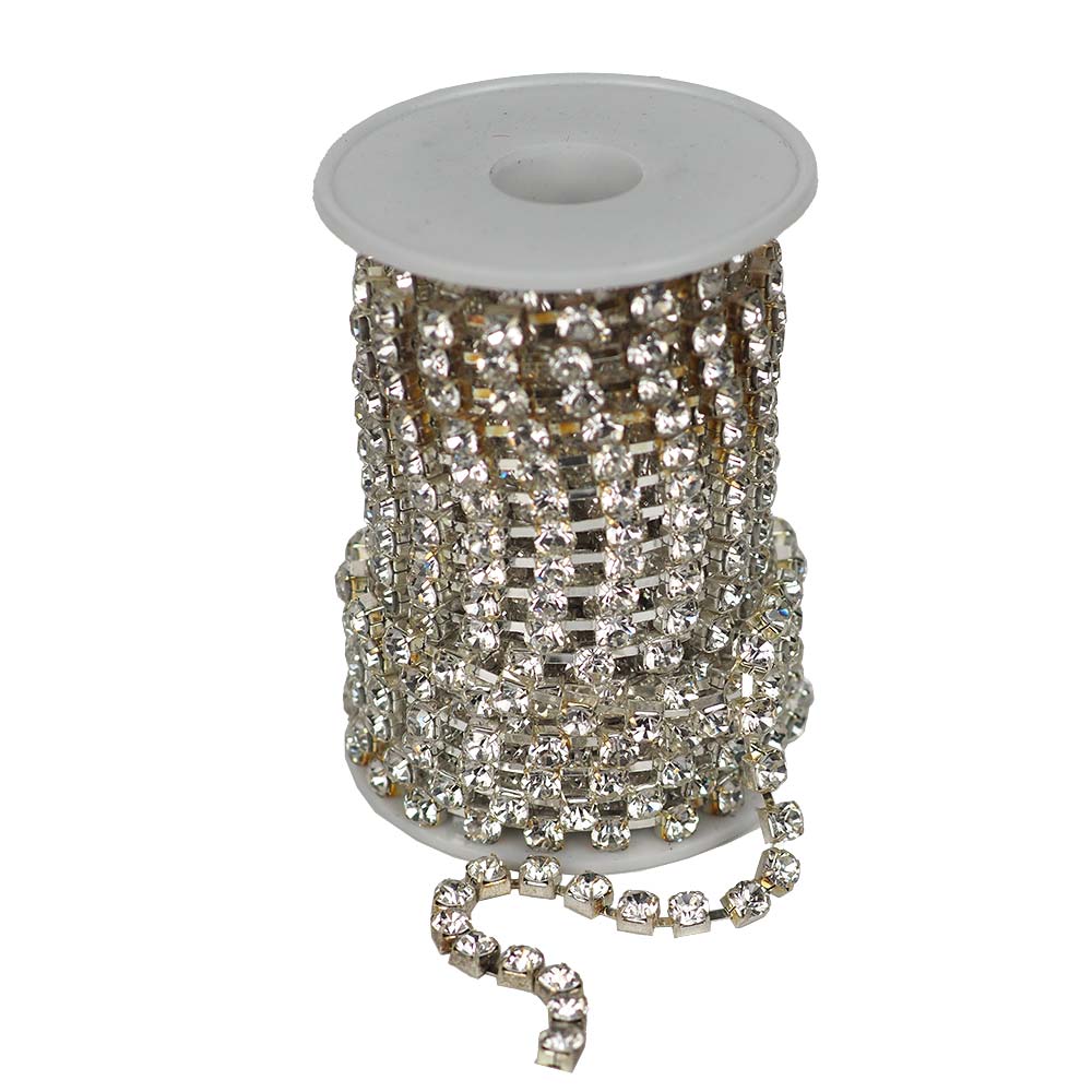 İri Taşlı Şerit Sıra Gümüş Renk 5 MM kalınlığında, takı toka, elbise, çanta, ayakkabı gibi birçok ürünü süsleme için kullanabilirsiniz.