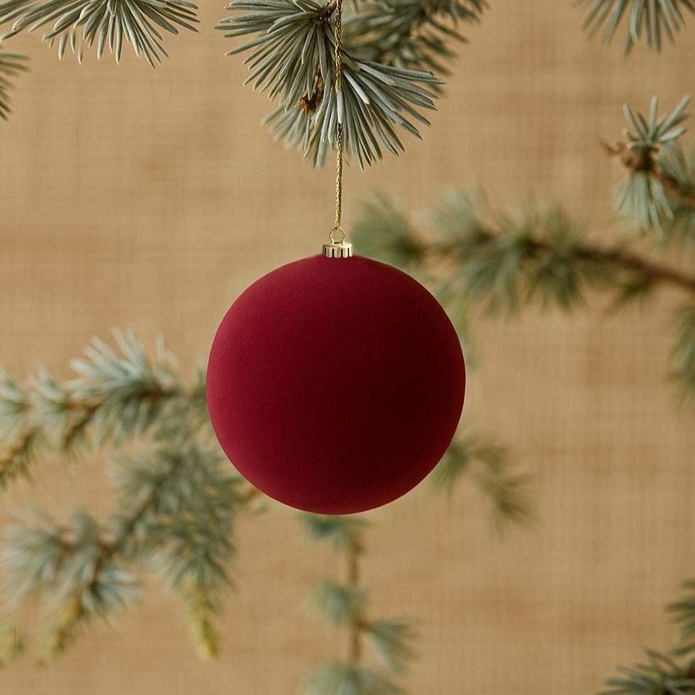 Zarif dokusuyla öne çıkan kadife yılbaşı topu, yumuşak yüzeyiyle çam ağacınıza sıcak ve lüks bir hava katar.