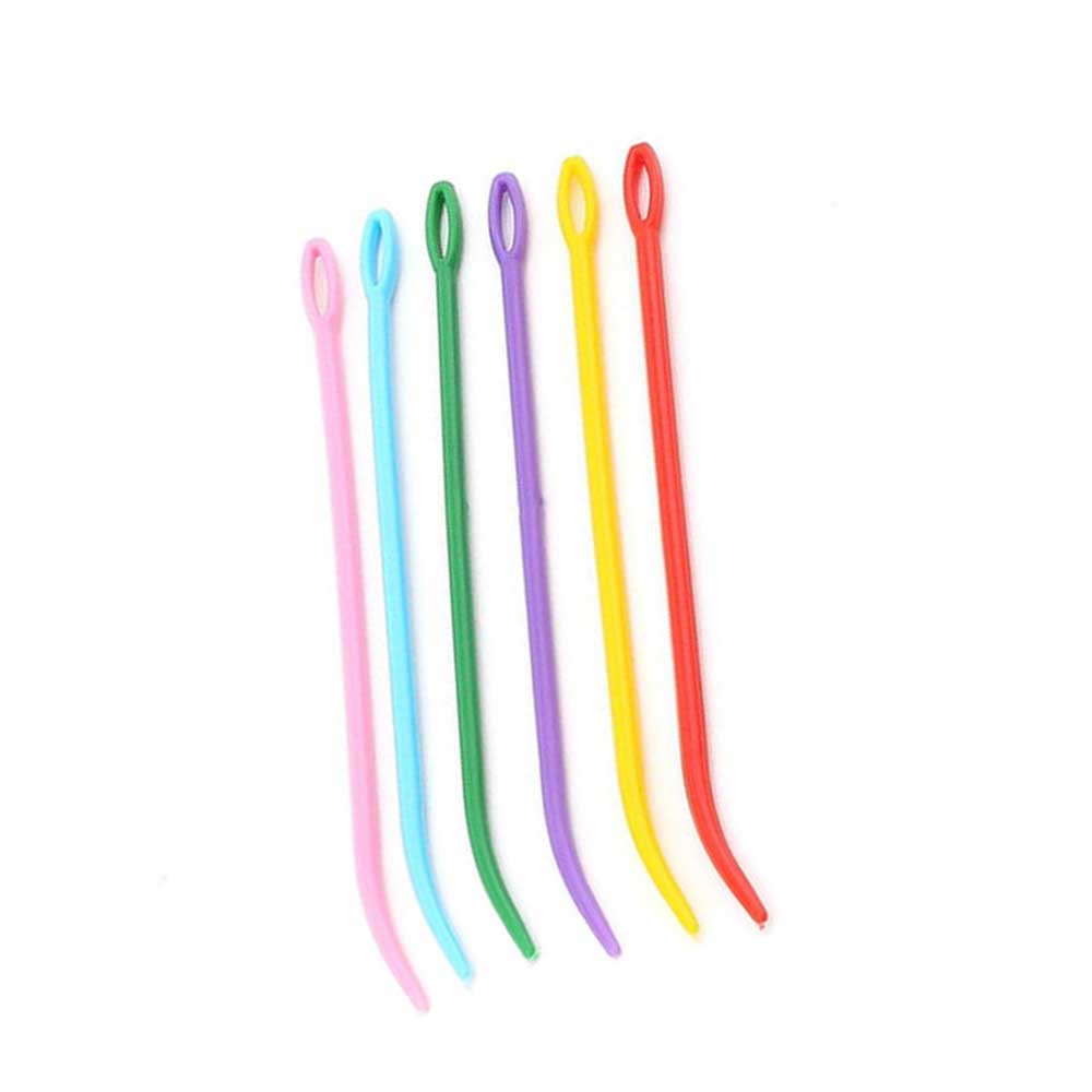 Kıvrık uçlu plastik iğne, 12 cm uzunluğunda esnek plastik yün iğnesi.