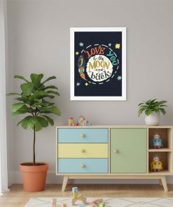 Tarz çocukların, tarz odaları için “Moon and Back” çerçevesiz poster. Özel kağıda baskıdır