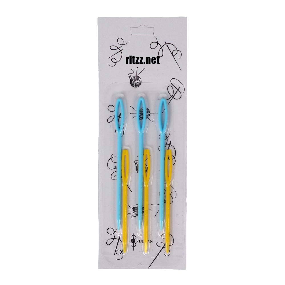 Plastik Yün İğnesi 2 Boy 6’lı Set, 2 boy 6 lı plastik iğne seti. 7 cm 3 adet, 9 cm 3 adet iğneden oluşmaktadır.